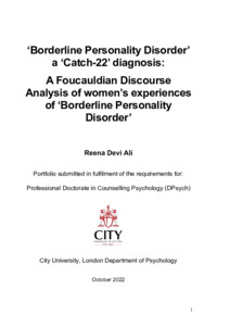 Ali, R. D. (2022). "Borderline Personality Disorder’ a ‘Catch-22’ diagnosis: A Foucauldian Discourse Analysis of women’s experiences of ‘Borderline Personality Disorder". (Unpublished Doctoral thesis, City, University of London)