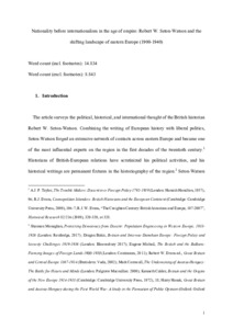Nationality before internationalism in the age of empire: Robert W. Seton-Watson and the shifting landscape of eastern Europe (1900-1940)