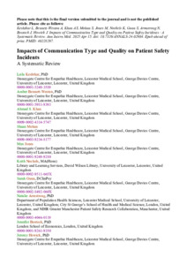 Impacts of Communication Type and Quality on Patient Safety Incidents.