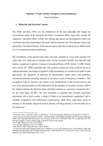 Opinion 1/75 and Exclusive European Union Competences.