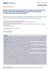 Relative and bedside nurse assessment of comfort and communication during propofol, dexmedetomidine, or clonidine-based sedation: pre-planned analysis within the A2B RCT.