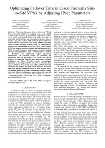 | Publisher Keywords: | IPSEC, Site to Site VPN, FTD, Convergence time, Optimal failover time |