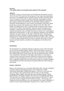 The history of music in UK universities can be divided into three periods: (a) from 1945 to the mid-1970s, which saw the emergence of most major music departments and music as an established area for academic study and research, but during which time most research took the form of textual scholarship, monographs for general readers, and teaching aimed to produce music teachers, professional organists and choir directors; (b) from the mid-1970s to the mid-1990s, with the growth of a humanities-inclined approach to music research, the foundation of the SMA and the journal Music Analysis, with important new textbooks (Cook 1987; Bent 1987; Dunsby and Whittall 1988), and a consequent growth of systematic music analysis; (c) from the mid-1990s to the present day, with major growth of academic music technology, commercial music and musical theatre, an elision of divides between academic and practical work, and latterly the closure of various more ‘musicological’ departments and programmes, as well as new ideological challenges to the traditional humanities and music analysis. In this paper I outline this history, identifying key milestones in research, and offer a range of arguments for declines in these respects during period (c), whilst drawing upon Horton 2020, Donn and Pace 2023, and Cavett et al 2023 to analyse perspectives on the value or otherwise of the study of musical notation and theory/analysis, and reflect on the implications for the future of the discipline.