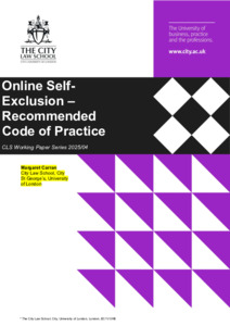 Carran, M. (2025). Online Self-Exclusion – Recommended Code of Practice (CLS Working Paper Series 2025/04). London, UK: City Law School.