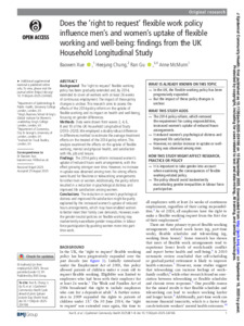 Does the ‘right to request’ flexible work policy influence men’s and women’s uptake of flexible working and well-being: findings from the UK Household Longitudinal Study.