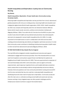 | Publisher Keywords: | Health inequalities, Deprivation, 10-year health plan, Community nursing, homeless health |