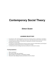This chapter aims to provide you with a brief introduction to contemporary social theory. To this end, the chapter is divided into seven parts. In the first part, you will learn about the concept of social theory. This part argues that, while the history of social theory is inextricably linked to the rise of modernity, in the early 21st century its status vis-à-vis the social sciences has been called into question. In the second part, you will find out about the relevance of social theory, notably in terms of the central place it occupies in the contemporary social sciences. In the third part, you will be invited to grapple with the knowledge-seeking spirit of social theory, which, as you will see, obliges us to examine the epistemic differences between ‘ordinary’ and ‘scientific’ ways of engaging with the world. In the fourth part, you will be made aware of key dimensions that should be taken into account when studying social theories – notably their historical situatedness, their principal contributions to human knowledge, and their strengths and weaknesses. In the fifth part, you will acquire some basic insights into the scope of social theory, including the distinction between ‘clas- sical’ and ‘contemporary’ approaches. In the sixth part, you will be presented with an overview of different versions of social theory, recognizing that its contemporary variants are far more diversified than their classical predecessors. In the seventh part, you will benefit from a synopsis of noteworthy trends and developments in contemporary social theory, emphasizing its heterogeneous nature and pluralistic outlook.