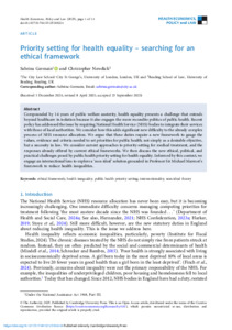 Priority Setting for Equality: Searching for an Ethical Framework.