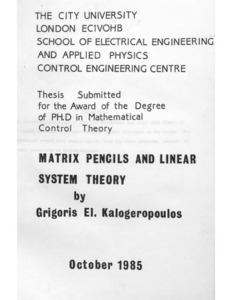 Kalogeropoulos, G. E. (1985). Matrix pencils and linear system theory. (Unpublished Doctoral thesis, The City University)