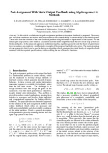 Publisher Keywords: | Control Theory, Pole assignment, Output feedback, Controllability, Observability, Generalized inverse matrix |