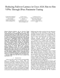 Publisher Keywords: | IPSEC, Site to Site VPN, ASA, Convergence time, Optimal failover time |