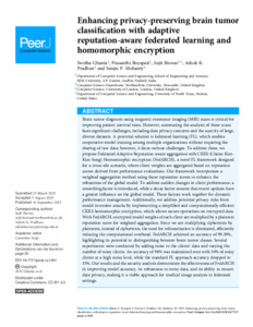 | Publisher Keywords: | Federated learning, Brain tumor classification, Reputation, CKKS, Homomorphic encryption, Cross-silo |