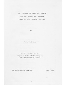 Loizidou, M. (1982). Ion exchange of lead and cadmium with the sodium and ammonium forms of some natural zeolites. (Unpublished Doctoral thesis, The City University, London)