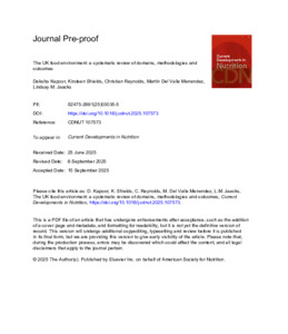 The UK food environment: a systematic review of domains, methodologies and outcomes.