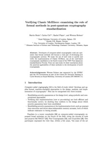 Verifying Classic McEliece: Examining the Role of Formal Methods in Post-Quantum Cryptography Standardisation.