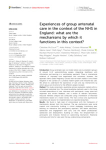 Experiences of group antenatal care in the context of the NHS in England: what are the mechanisms by which it functions in this context?.