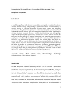 Reconsidering Music and Trance: Cross-cultural Differences and Cross-disciplinary Perspectives.