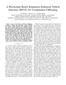 A Blockchain-Based Reputation-Enhanced Vehicle Selection (REVS) for Computation Offloading.