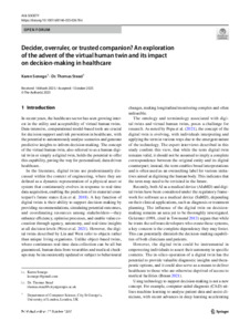 Decider, overruler, or trusted companion? An exploration of the advent of the virtual human twin and its impact on decision-making in healthcare.