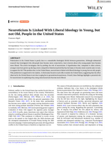 | Publisher Keywords: | age, anxiety, depression, generation, ideology, liberal, neuroticism |