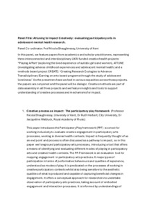 Panel: Attuning to Impact Creatively: Evaluating Participatory Arts in Adolescent Mental Health Research. Paper title: Creative Process as Impact: The Participatory Play Framework.