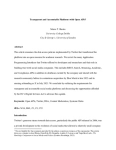 | Publisher Keywords: | open APIs, Twitter, DSA, content moderation, systemic risks |