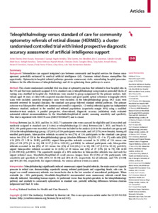 Teleophthalmology versus standard of care for community optometry referrals of retinal disease (HERMES): a cluster randomised controlled trial with linked prospective diagnostic accuracy assessment of artificial intelligence support.