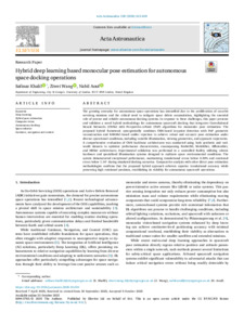 Hybrid deep learning based monocular pose estimation for autonomous space docking operations.