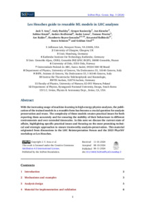 Les Houches guide to reusable ML models in LHC analyses.