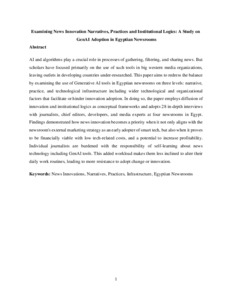 Examining News Innovation Narratives, Practices and Institutional Logics: A Study on GenAI Adoption in Egyptian Newsrooms.