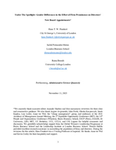 Under the spotlight: Gender differences in the effect of firm prominence on directors’ new board appointments.