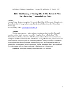 The Meaning of Missing: The Hidden Power of Police Data Recording Practices in Rape Cases.