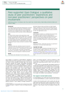 Peer-supported Open Dialogue: a qualitative study of peer practitioners’ experiences and non-peer practitioners’ perspectives on peer involvement.