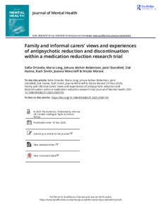 Family and informal carers’ views and experiences of antipsychotic reduction and discontinuation within a medication reduction research trial.