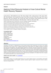 Applying Critical Discourse Analysis to Cross-Cultural Mental Health Recovery Research.