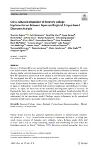 Cross-cultural Comparison of Recovery College Implementation Between Japan and England: Corpus-based Discourse Analysis.