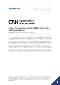 This interview with Vincent Hazard explores the creative genesis and collaborative process behind Strange Fruit. La chanson d’Abel (Dupuis, Aire Libre, 2025), a French language graphic novel illustrated by A. Dan that reimagines the story of Abel Meeropol, who wrote the anti-lynching song "Strange Fruit” (1939), and his connection to jazz icon Billie Holiday. Hazard recounts his journey from sound engineer to screenwriter, radio dramatist, and eventually graphic novel writer, highlighting how his earlier audio drama on Meeropol evolved into a comic. The conversation delves into key challenges of narrative balance, visual representation, emotional authenticity, and political resonance. Hazard reflects on the unique responsibilities of portraying racially and politically sensitive histories, the aesthetics of musicality in comics, and the necessity of research-driven storytelling grounded in archival truth. The interview also addresses the importance of artistic collaboration, transatlantic reception, and the socio-political relevance of such stories today, emphasising the value of complexity, nuance, and transnational solidarity in reclaiming marginalised histories through graphic storytelling.
