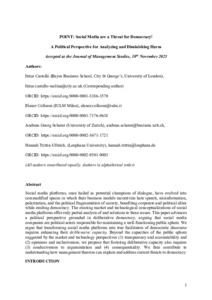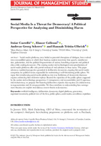 Social Media are a Threat for Democracy! – A Political Perspective for Analyzing and Diminishing Harm.