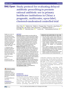 Study protocol for evaluating delayed antibiotic prescribing to promote rational antibiotic use in primary healthcare institutions in China: a pragmatic, multicentre, open-label, clustered-randomised controlled trial.