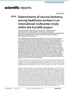 Determinants of vaccine hesitancy among healthcare workers in an international multicenter study within the EuCARE project.