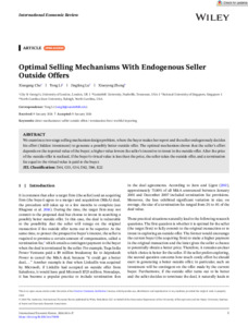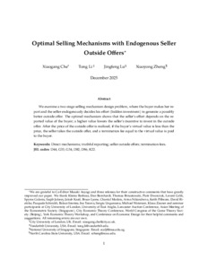 Che, X., Li, T., Lu, J. & Zheng, X. (2026). Optimal Selling Mechanisms with Endogenous Seller Outside Offers. International Economic Review, doi: 10.1111/iere.70056