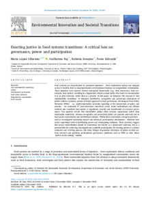 Enacting justice in food systems transitions: A critical lens on governance, power and participation