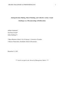 Joining Decision-Making, Moral Thinking, and Collective Action: Grand Challenges as a Phenomenology of Deliberation.