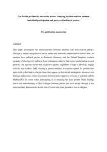 One foot in parliament, one on the streets: Studying the fluid relation between individual participation and party evaluations of protest.