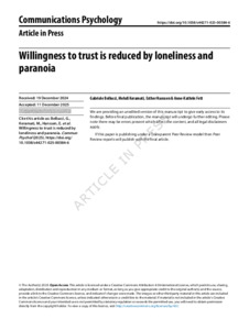 Loneliness is associated with negative social behaviors, impairing social relationships. However, the underlying mechanisms are poorly understood. Here, we investigated the relationship between paranoid thoughts and lonely individuals’ willingness to rely on expectations of partner reciprocity in an investment game with individuals with and without psychosis (54 participants). We found that loneliness and paranoia were strongly correlated with each other and with more distrustful behavior after breaches of trust. Sensitivity to changes in partner reciprocity was higher in lonelier and more paranoid individuals. Lonelier individuals also trusted highly reciprocating partners less. Computational modeling revealed that lonelier and more paranoid individuals were less willing to rely on expectations of partner reciprocity. Importantly, these effects were observed in both patients and controls, indicating the important role of loneliness and paranoia in both clinical and general populations. These findings demonstrate how loneliness relates to social behaviors and expectations, pointing to important downstream implications for lonely individuals’ relationships.