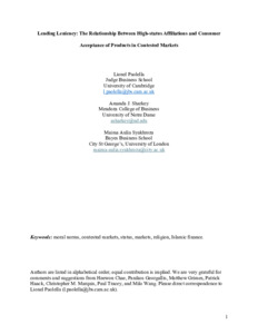 Paolella, L., Sharkey, A. & Syakhroza, A. (2026). Lending Leniency: The Relationship Between High-status Affiliations and Consumer Acceptance of Products in Contested Markets. Organization science,