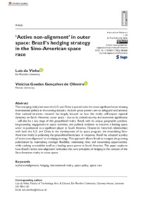 The emerging rivalry between the U.S. and China is poised to be the most significant factor shaping international politics in the coming decades. As both great powers aim to safeguard and advance their national interests, research has largely focused on how this rivalry will impact regional dynamics on Earth. However, outer space – due to its critical security and economic significance – will also be a key stage of this geopolitical rivalry. Brazil, with its unique geographic position, long-standing engagement in space activities, and political ambition to become a leading space actor, is positioned as a significant player in South America. Despite its historical relationships with both the U.S. and China in the development of its space program, the intensifying Sino-American rivalry is polarizing the geopolitical landscape. In response, Brazil has adopted a policy of ‘active non-alignment’ as a hedging strategy. This approach allows Brazil to navigate the growing polarization by maintaining strategic flexibility, minimizing risks, and maximizing opportunities, while seeking to establish itself as a leading space power in South America. This paper explores how Brazil’s ‘active non-alignment’ embodies the core principles of hedging in the context of the Sino-American rivalry in outer space.