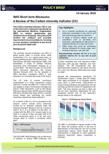 The Carbon Intensity Indicator (CII) is one of the short-term measures introduced by the International Maritime Organization (IMO) to reduce greenhouse gas emissions from shipping. This policy brief reviews the measure and provides improvement recommendations, focusing on how emission standards at sea and at port should be dealt with.