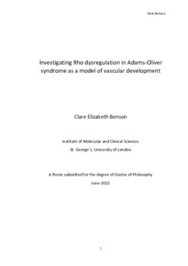 Benson, C. E. (2022). Investigating Rho dysregulation in Adams-Oliver syndrome as a model of vascular development. (Unpublished Doctoral thesis, St George's, University of London)