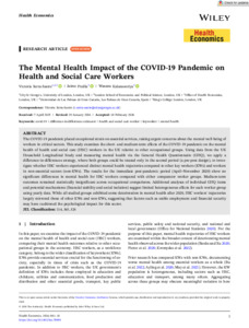 | Publisher Keywords: | covid-19, difference-in-differences estimator, health and social care worker, keyworker, mental health |